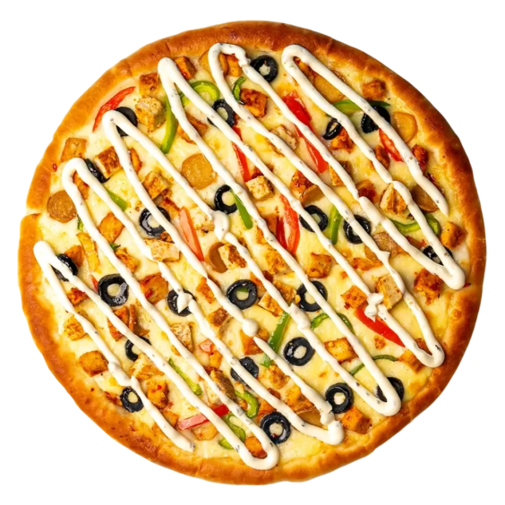 A Big Combination of Chicken Tikka, Chicken Fajjita, Onion, Green Pepper & Mashrooms Topped With Black Olives & Tomatoes along with Galaxies of Cheese.
